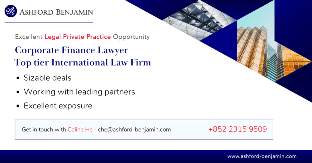 A top tier international law firm in Hong Kong is looking for a junior to mid-level associate (2+ PQE) to join their established corporate practice. Experience with listing rules and public M&As (including takeovers code) is essential.