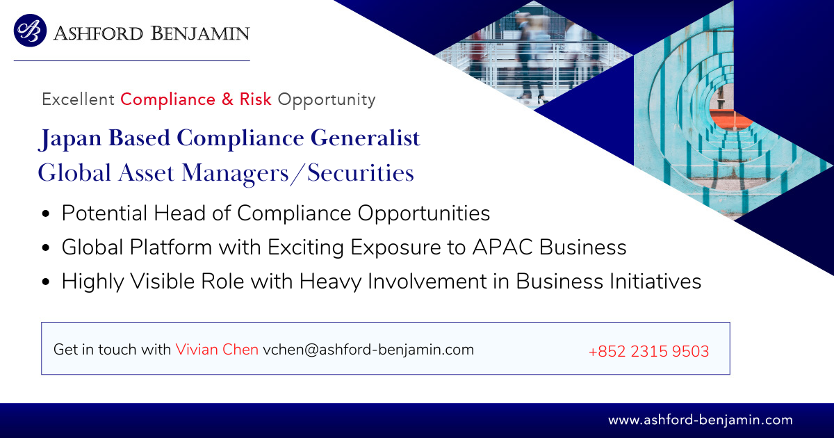 Ashford Benjamin is partnering with multiple global asset managers and securities houses who are keen to hire middle to senior-level compliance officers to join their Japan office.